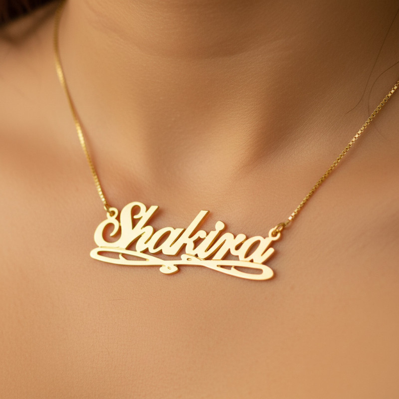 Design: Customizable nameplate in an elegant script, ideal for a classic "Shakira" look.